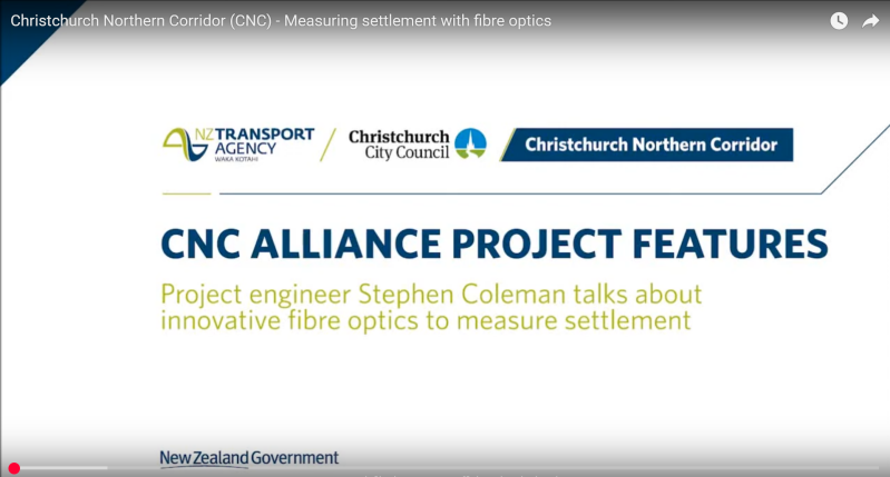Lorsqu'il est apparu, en 2016, qu'aucune des techniques de mesures traditionnelles ne parvenait à atteindre les objectifs fixés par l'autorité de régulation locale des transports pour l'auscultation réglementaire du projet d'autoroute de contournement Nord de Christchurch (Nouvelle Zélande), geophyConsult a été appelé pour démontrer que la fibre optique permettrait d'atteindre les objectifs réglementaires fixés, puis à former à l'auscultation par fibre optique le petit bureau d'études local qui était responsable de la conception et de la mise en œuvre dudit système.
